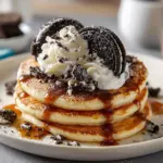 Indulge in these rich and fluffy Oreo pancakes, perfect for a delightful breakfast or brunch treat.